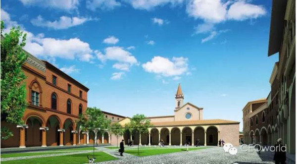 参考"柱廊之城" 连续不断回廊的设计风格,整合了塔、文艺复兴时期的宫殿、哥.式教堂等古代建筑.色,在每栋大建筑物的前方都建有华丽的柱廊.人们可在廊中行走,免受日晒雨淋.