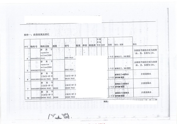 服务内容:【昌江黎族自治区海南核电项目】橡胶膨胀节合同